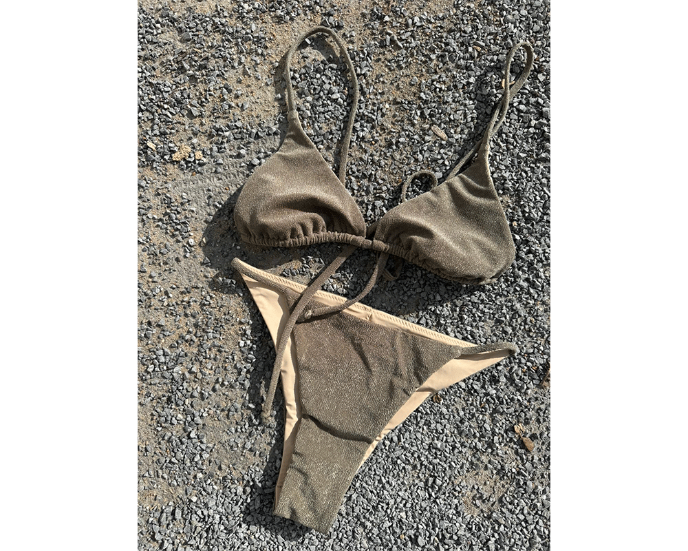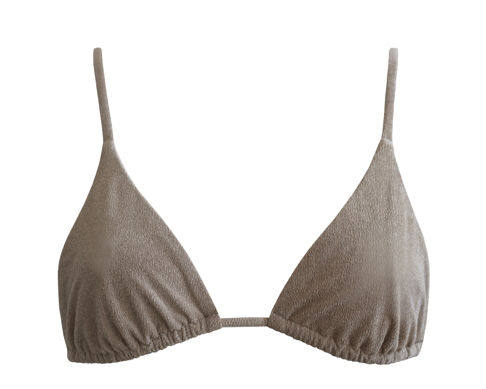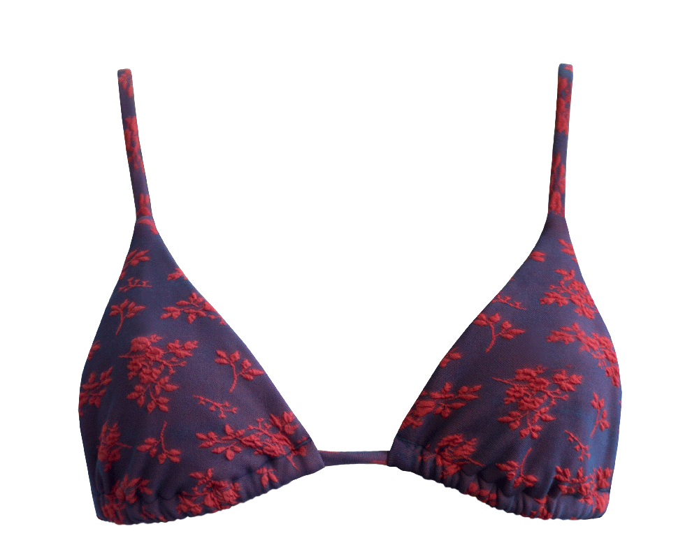 A triangle bikini top with minimum coverage, Olbia is designed with sensually drop-shaped cups and adjustable back and shoulder straps for a perfect fit.